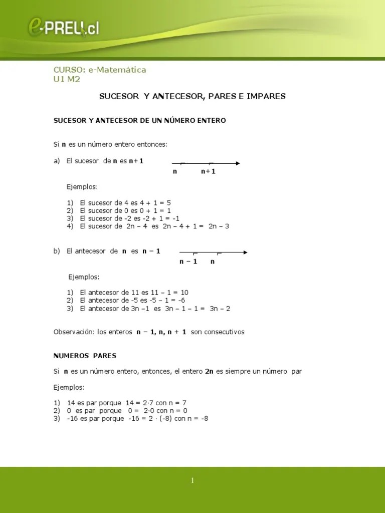 Sucesor, antecesor, pares, impares y cuadrado perfecto, con ejercicios resueltos · ejercicios de números enteros psu, modulo, orden de .